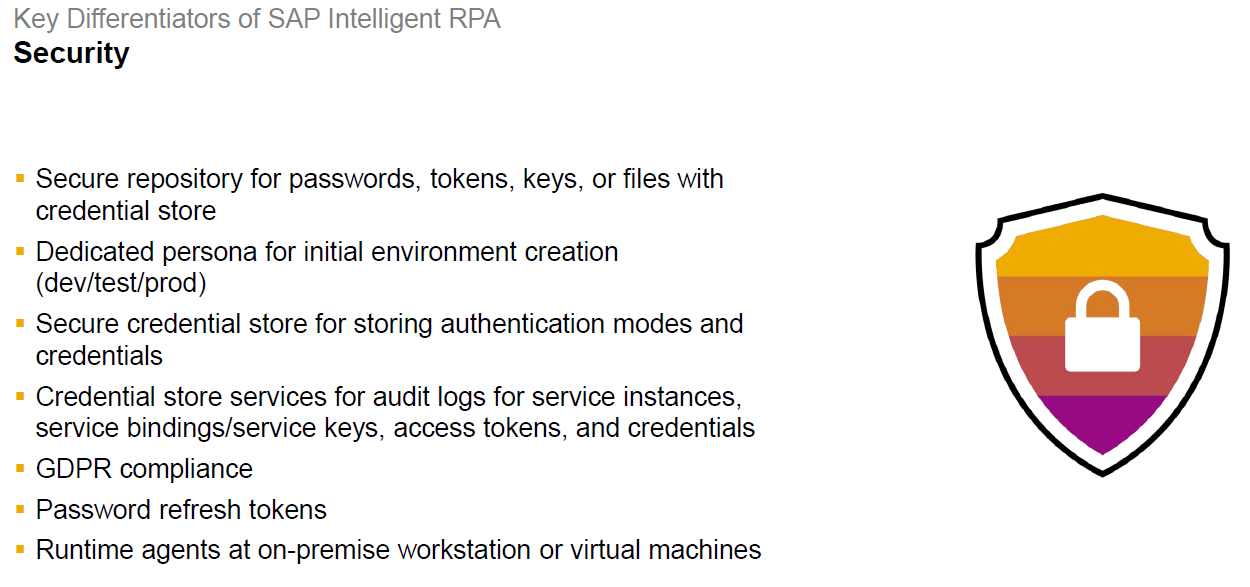 AI systems must be designed to guarantee data privacy and protection throughout its lifecycle. Adequate data governance must exist to ensure quality and integrity of the data that is used, such that AI systems can access and are capable of processing data in a manner that protects privacy. It must be guaranteed that digital records collected about humans will not be used by AI systems to unlawfully or unfairly discriminate against humans. Processes and data sets used to train AI systems must be tested and documented at each step such as training, testing and deployment. There are regulatory requirements such as GDPR in Europe which the AI system design and behaviour must comply with. In SAP Intelligent RPA, this principle is adopted as explained in the exhibit - A below.