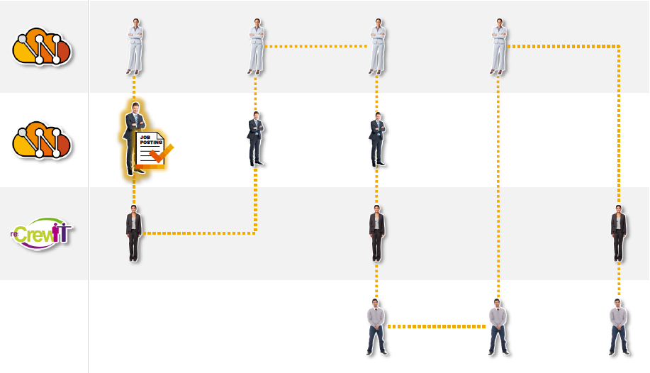 3. Distributing the Job Posting: The job posting is distributed via a workflow to eligible Suppliers. They validate potential candidates and submit them to PMO of Buyer organisation.