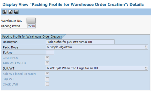3. So that the packing profile in the warehouse order creation rule creates the pick-HUs, you have selected the Create HUs and the Assign WTs to HUs checkboxes in the packing profile.