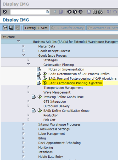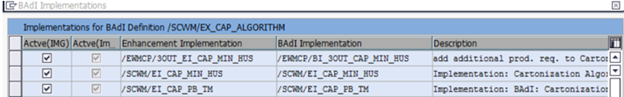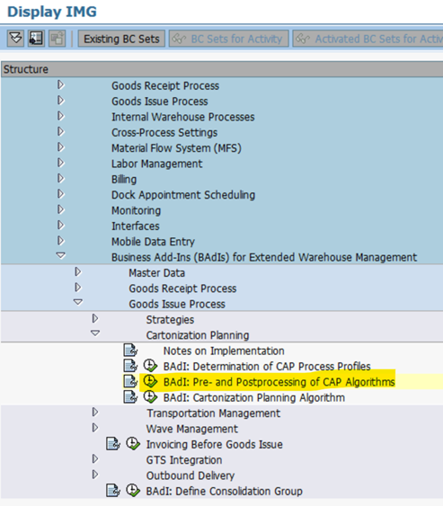 • To modify the result of the Cartonization planning algorithms, you have implemented the BADI method ADJUST_CAP_RESULT.