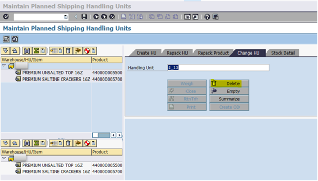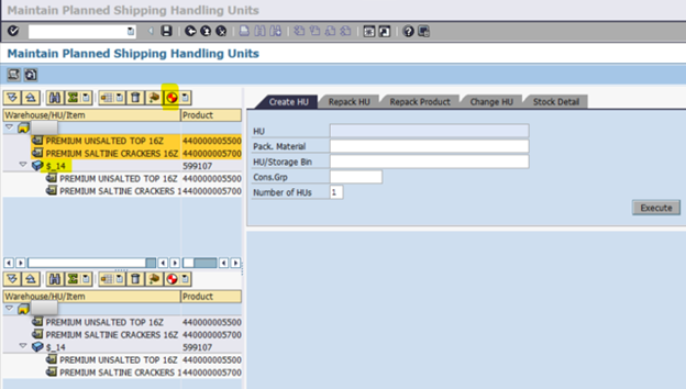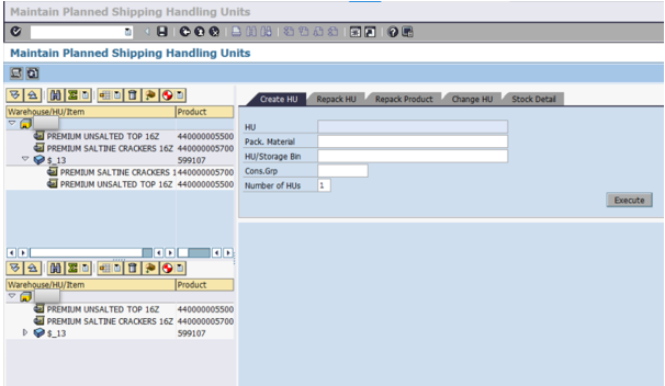 In this case you work with waves. The system automatically creates planned shipping handling units (PSHUs) for warehouse tasks during warehouse order creation. The system uses the PSHUs as templates for creating pick-handling units (pick-HUs), which you use as shipping handling units (shipping Hus)