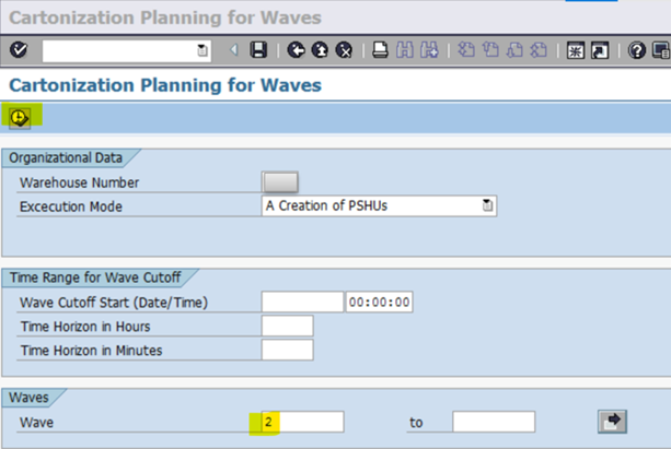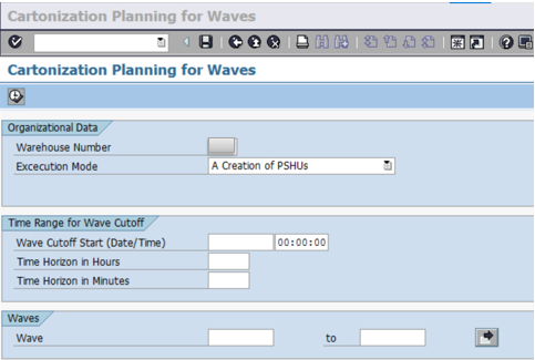 To start Cartonization planning for waves, execute the transaction Cartonization Planning