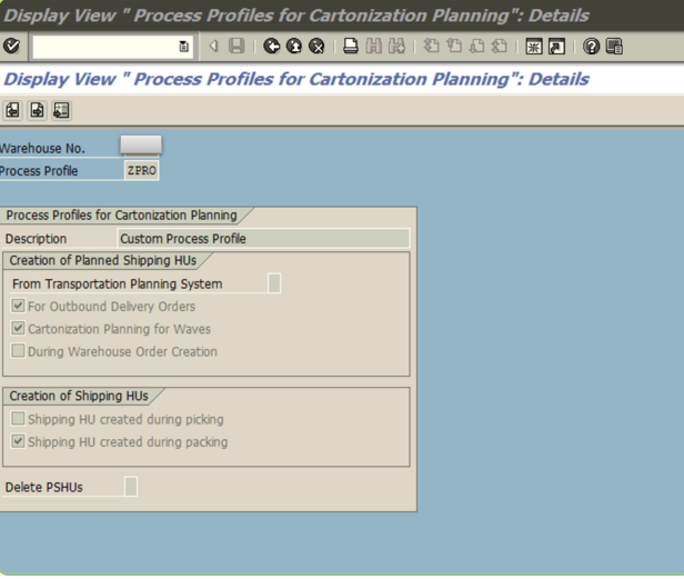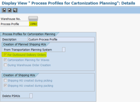 Process profile in Cartonization planning to determine when in the outbound process planned shipping HUs are created and used for the creation of shipping HUs.