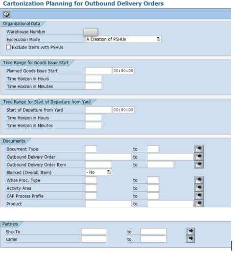 Selection of Outbound Delivery Orders for Cartonization Planning. You can select outbound delivery orders by the following criteria: