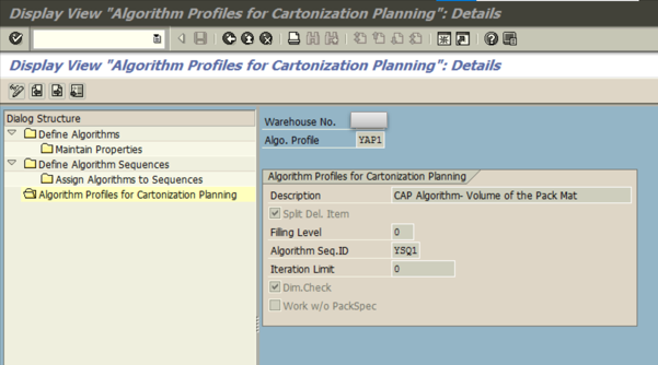 01: Determine Algorithm Profile T-Code: /SCWM/CAPPDET
