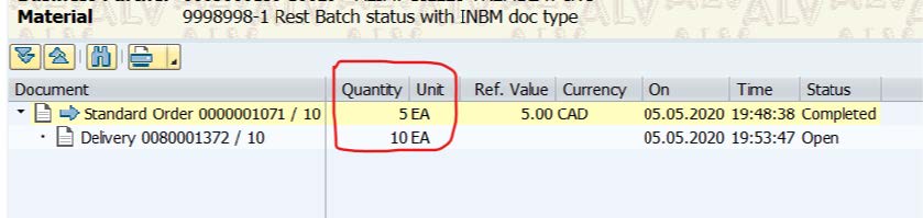 But, the outbound delivery is not adjusted(10 pcs) as Sales order quantity because the Warehouse activity is already completed with Picking and Packing status completed. In this case, since warehouse processing has already started, ERP S4H systems do not receive a final update of the quantity until a goods issue is posted from SAP EWM.