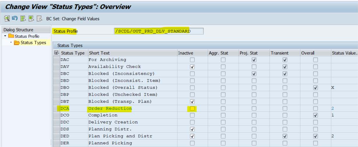 In the item type, activate status type Order Reduction (DCA)
