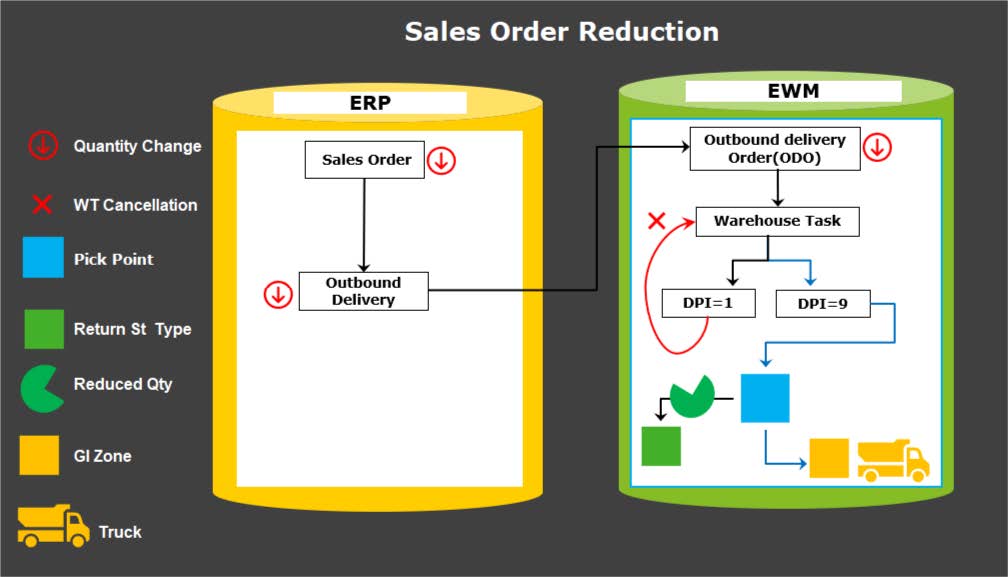 This functionality is basically based on Sales order Quantity reduction or cancellation in ERP and how the changes then impact the Warehousing activity - including logistics, execution and delivery.