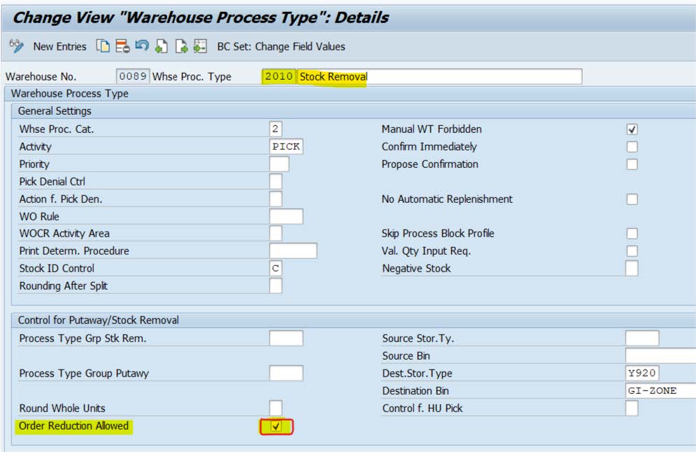 Configuration of Order Reduction in SAP EWM