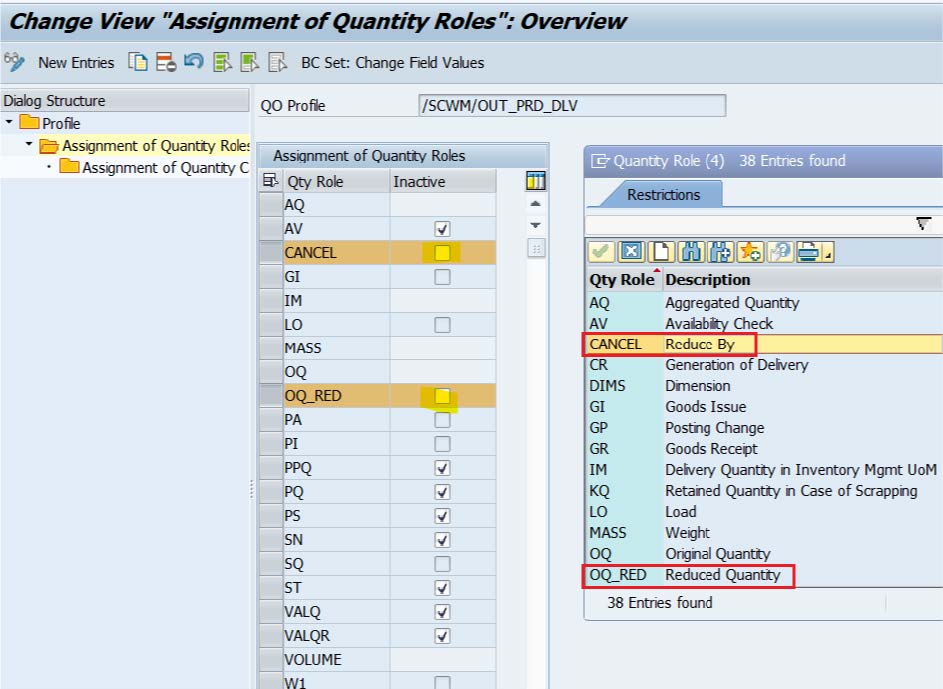 At Item type(ODLV, PDO) : Activate quantity role Reduce By (CANCEL) and Reduced Quantity ( OQ_RED), for the quantity offsetting profile used in the item type.