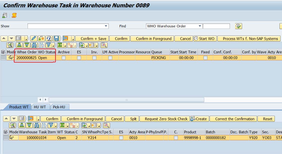 Check the Picking Warehouse task status in EWM WT is created but not confirmed.