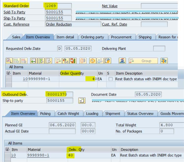 The warehouse worker is informed when packing that SO quantity is reduced. The stock item loses the reference to the outbound delivery order and the quantity of the outbound delivery order item is reduced.