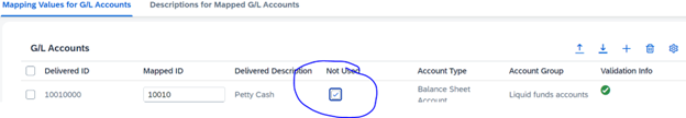 • G/L accounts marked initially as “Not used”, can be set back for use in the “Manage G/L Account Master Data.”