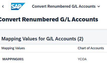 • Changes made in the G/L accounts renumbering process can be displayed in the “Manage G/L Account Master Data” configuration step and in the app on the SAP Fiori launchpad selecting “View Logs”