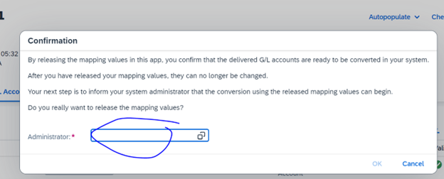 Generation of work item for conversion of renumbered G/L Accounts in My Inbox app. The administrator can open the inbox to check messages. Administrator can choose the correct action in the app. S/he has to confirm and submit.