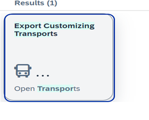 Screen showing Export Customizing Transports app