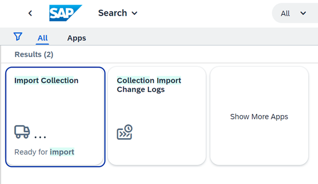 6. As an administrator, open the Import Collection app in the production system and repeat the steps performed in the test system.