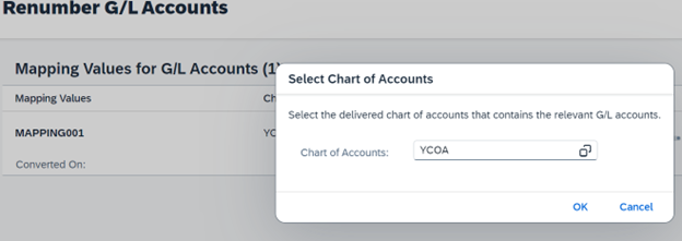 Convert the values for G/L accounts in the system based on the mappings defined in the “Define Mapping Values for G/L Accounts” configuration step during a system downtime.