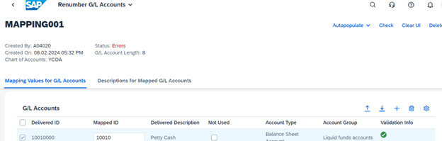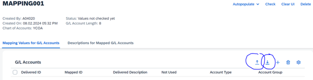 List of G/L accounts can also be downloaded to excel and uploaded after assigning new IDs in excel.