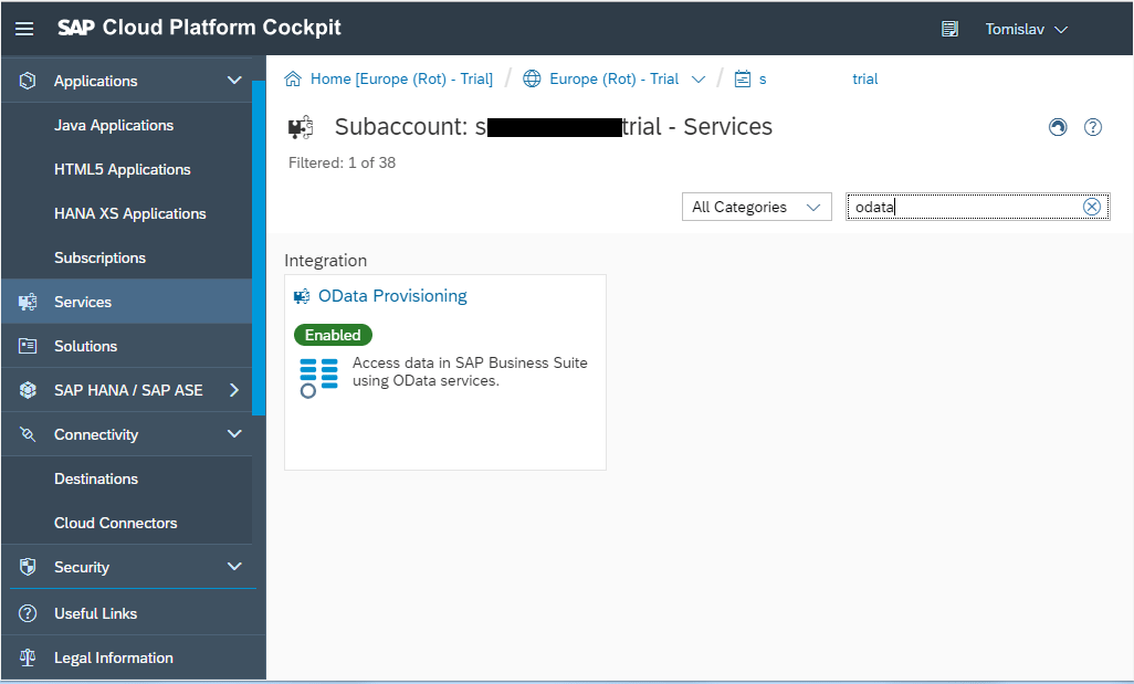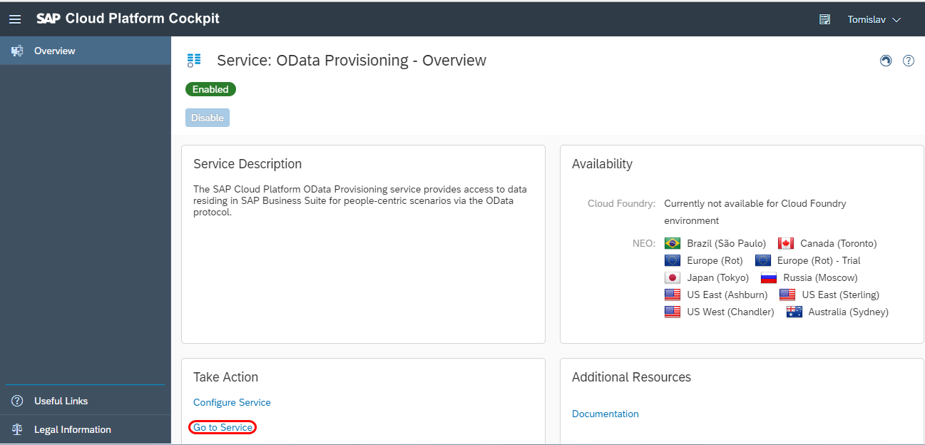 We must enable and configure OData Provisioning service in SAP Cloud Platform Cockpit.
