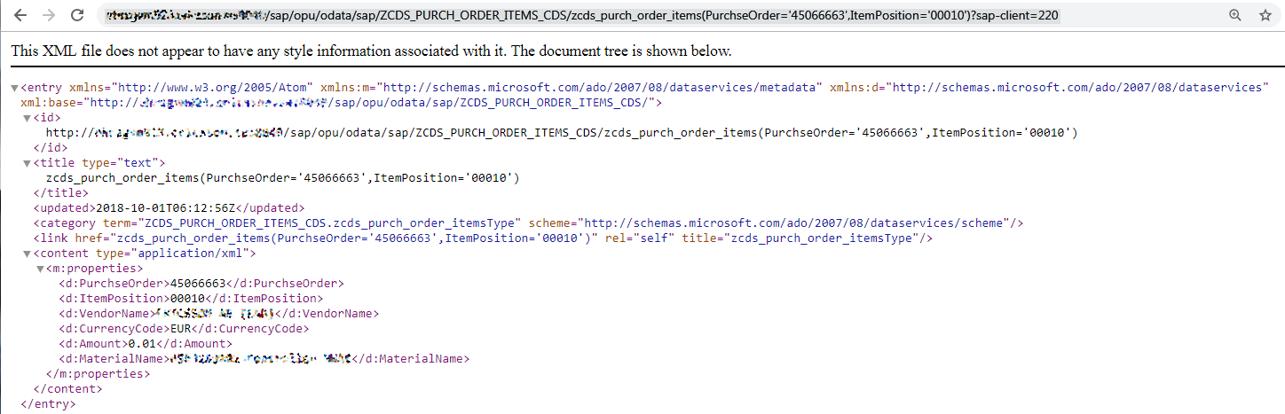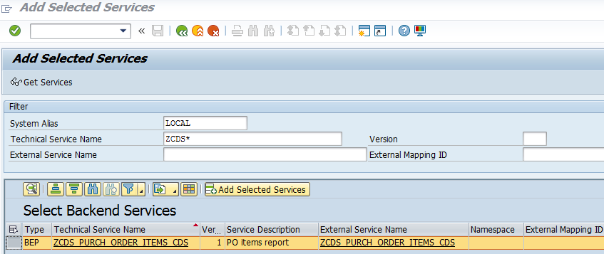 • service from Core Data Services (CSD) view ZCDS_PURCH_ORDER_ITEMS