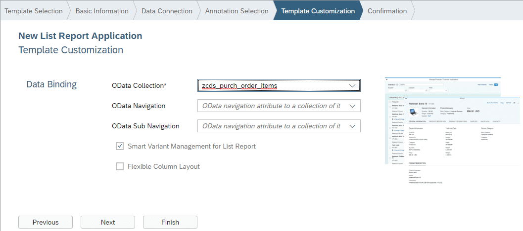 We create CDS view based on the chosen view template. Don't forget @Odata.publish:true annotation for automatically generating OData model definition, as well as the OData service runtime.
