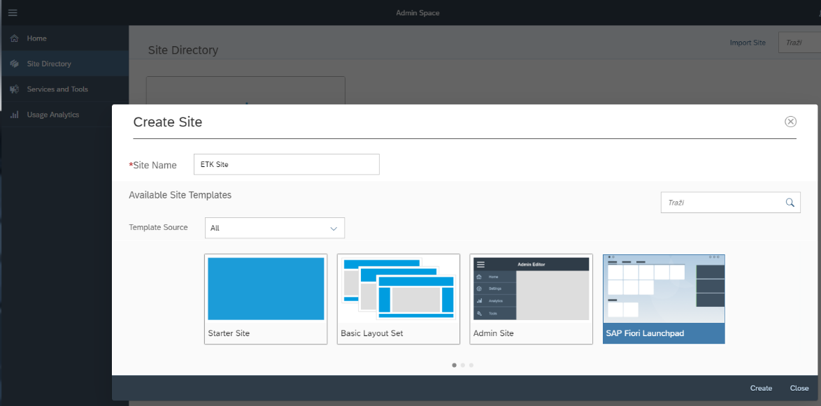 Go back to Portal service and click Go to Service. After that, click on Site Directory and choose Create Site.