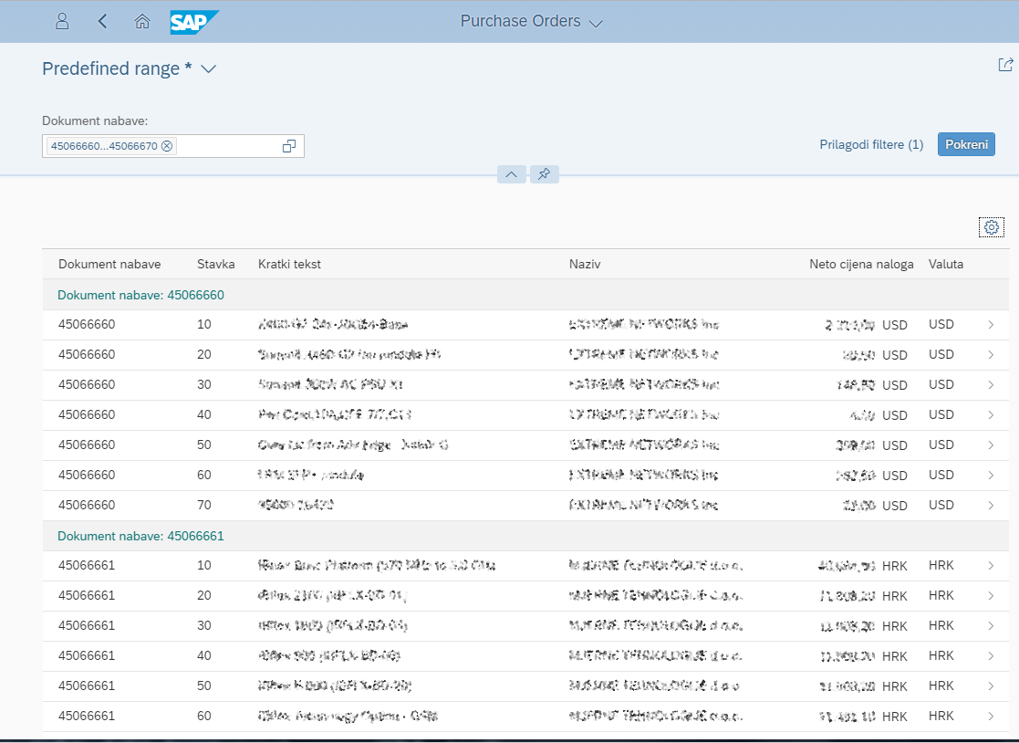 and check all columns. Then arrange filtering, sorting and grouping by your needs. We can see the purchase order items from our on-premise SAP system.