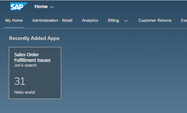 In the Fiori screen, the “Focus” area is shown as a faint dotted line around an option – in my example, the dotted lines are around the first tile in my Recently Added Apps section as below: