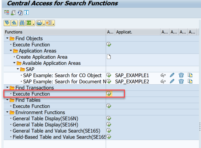 To find transactions and Fiori apps, select the “Find Transactions” Execute Function, as below: