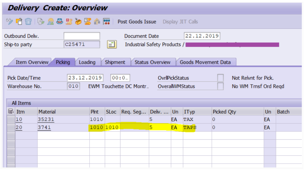 The logistics execution delivery is available and parts have been successfully substituted with corresponding item type ODSS. Now, the picker in warehouse is fully confirmed with regard to which product needs to be picked and stage it to the Goods issue area.