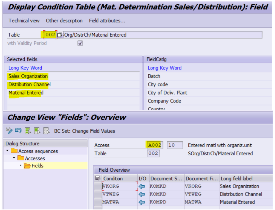 a) Create a required condition table for the requirement. In the explained example, Sales organisation, distribution channel and Material is selected.