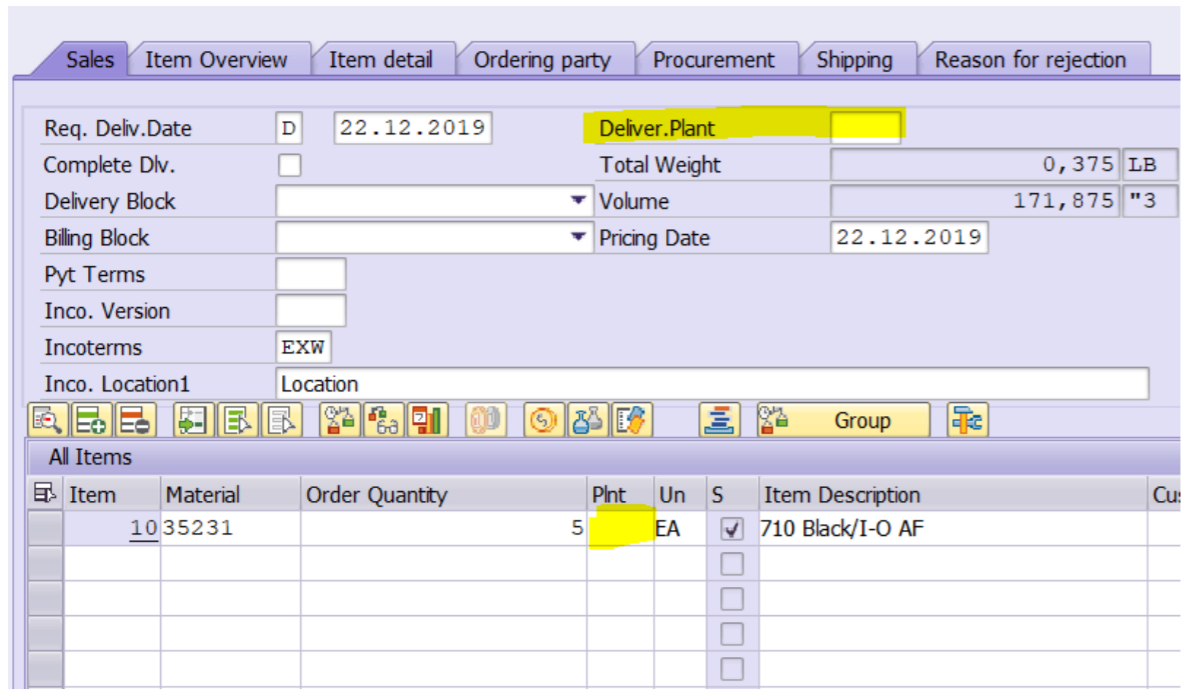 - Manually given Plant at item level (VBAP-WERKS)