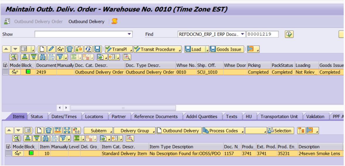 Check /SCWM/PRDO - Maintain Outbound Delivery Order.