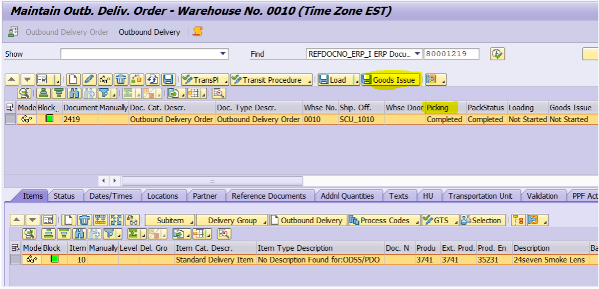 Picking is completed and now logistics execution delivery needs to be goods issued.