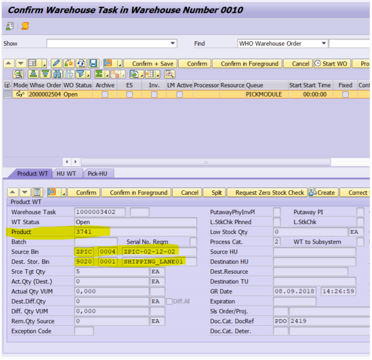4) Carry out EWM activity, Picking and Goods Issue from SCWM/PRDO