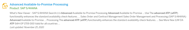 Perhaps a more useful thing to do is to return to the SAP Help Portal and look up individual functional areas from there to return interesting documentation. For example, searching for “advanced atp” brings up a few useful documents, as below.