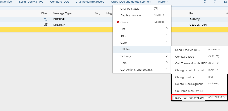 Here you can create your own copy of an existing IDOC with a specific segment deleted. SAP will ask you for the segment name when you hit this option. There is a similar option in the “More” functions to run the traditional WE19 option to create a copy version of the IDOC: