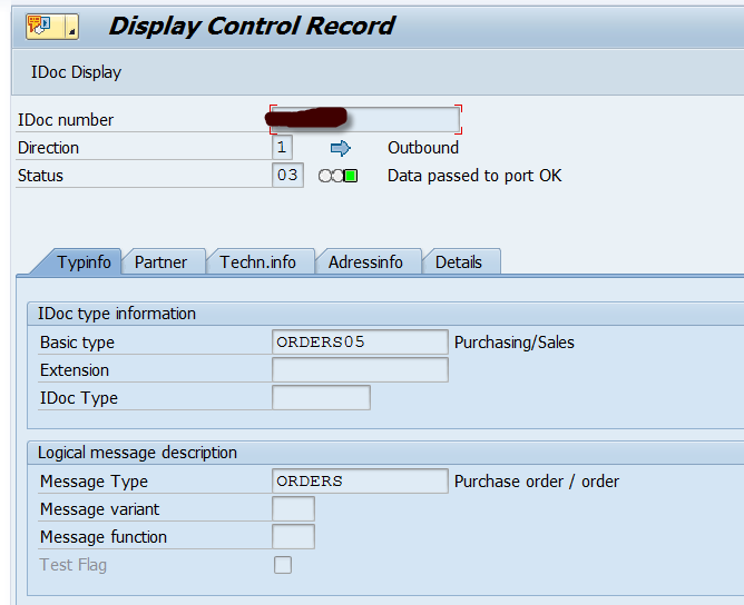 The control record shows you the direction, basic type and message type of the IDOC. It also shows you the sender and recipient partners.