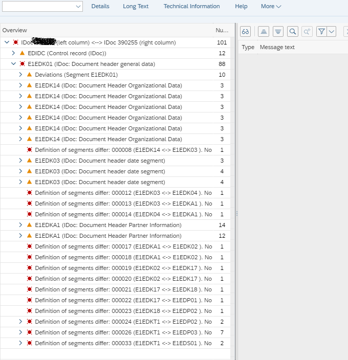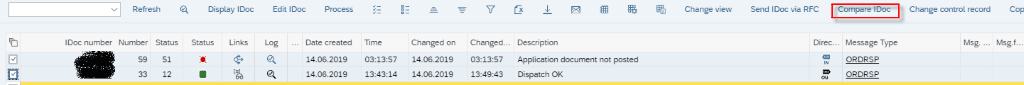 This is a really useful tool to compare two IDOCs (such as the two above) which look the same but one has failed. In the event that the status message you receive from SAP against the failed IDOC is not necessarily enough to identify the error, you can list out the differences between a successful IDOC and the unsuccessful one and go through each segment to see where you have an issue.