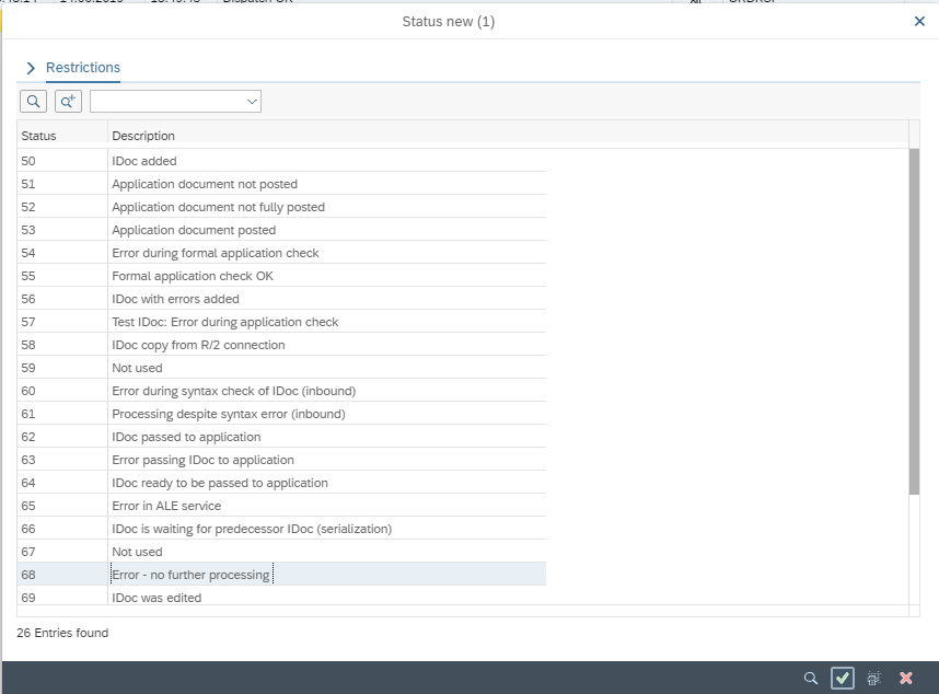 - The aim should be to keep the number of error IDOCs at zero. Any which cannot be resolved should be manually addressed in the documents and then the IDOC status amended to 68.
