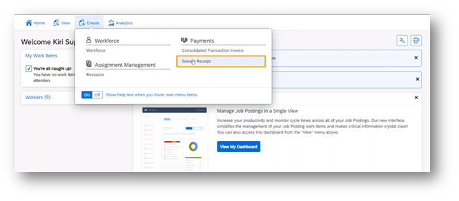 - Create/Submit Service Receipt