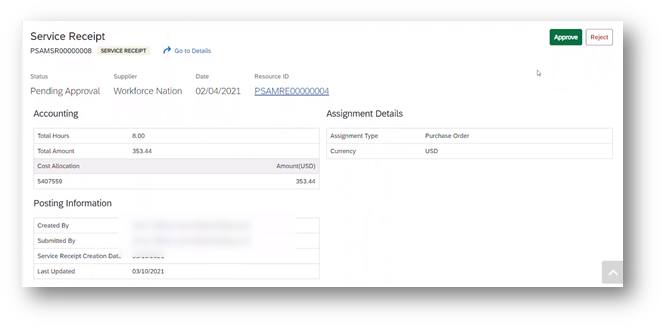 - Approve Service Receipt and generate/post service entry sheet