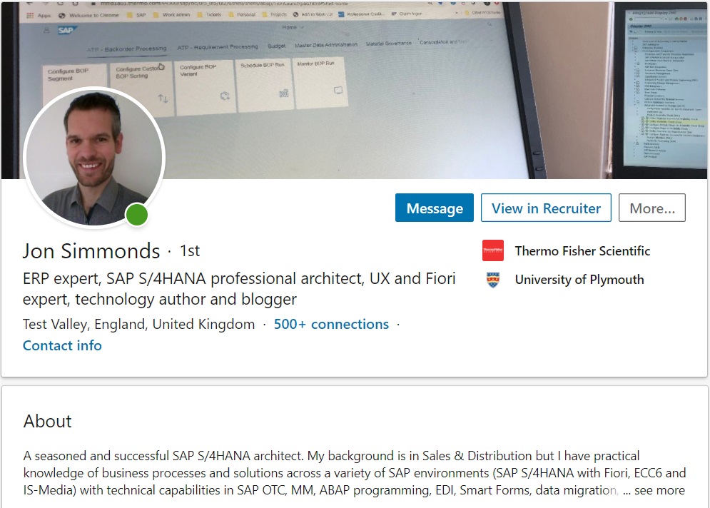 You are a stressed out SAP functional manager; you have lost a key member of your team and you need to replace them quickly. The work does not stop coming in – you’re in the middle of a complex SAP implementation and deadlines are flying by like only deadlines do. You need somehow to find time in this busy schedule to review applications for a replacement. A pile of CVs land in your inbox and you glance through them (make note of the word “glance” here – not much time is spent here). For those who have made the first cut, you begin looking at their LinkedIn profiles. You can’t spend too much time on them – you just don’t have the time. Which profiles stand out and jump out at you?