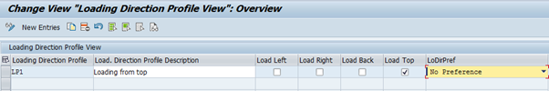The below enclosed screenshot highlights the different data element to be maintained for setting up the loading direction profile. The cargo can be loaded either in back, top and during loading in the sideways users need to select either load right/left.