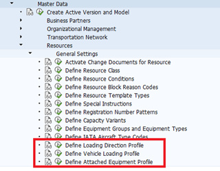 New functionality - Loading Direction profile has been added under the below enclosed SPRO node. For proper transportation planning and load consolidation scenarios it is required that specific direction is to be maintained in resource for proper loading and unloading of cargo in the resource and so it is used at both locations and resource master.