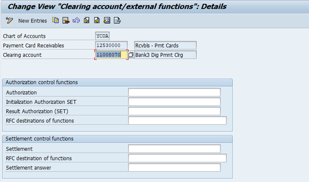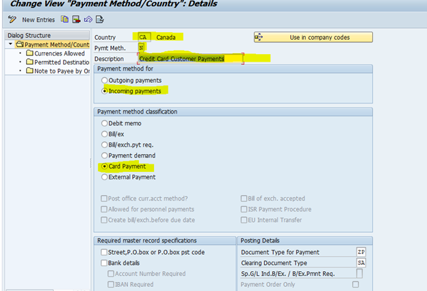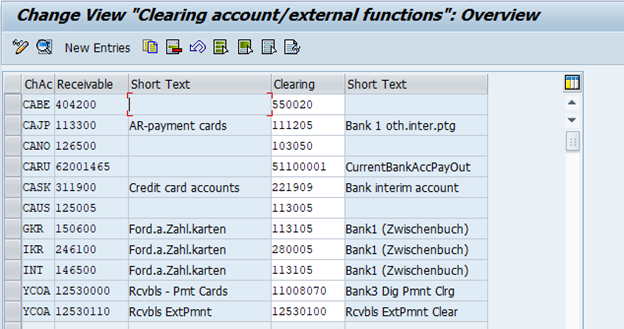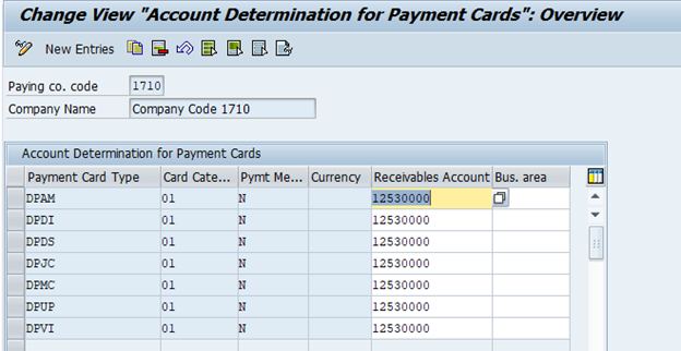 Account Determination for Payment Cards are based on the card type, the payment method and the currency, Provide G/L account on which you collect the receivables due from the credit card company.