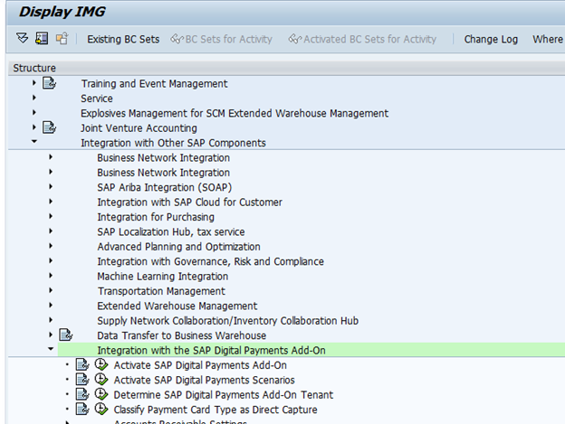 Activate the integration for "SAP digital payments add-on" in the system configuration.
