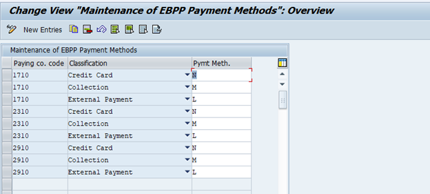 SPRO Financial Supply Chain Management -> Biller Direct -> Process Integration with Accounts Receivable Accounting -> Edit Payment Methods