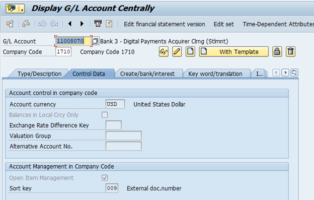 One house bank can be created for the bank master record of the virtual bank and that only one virtual bank account is permitted per currency. To do this we create the corresponding bank clearing accounts as usual. Main bank account must end with "00" and this must be defined for the corresponding house bank account in Bank Account Management.
